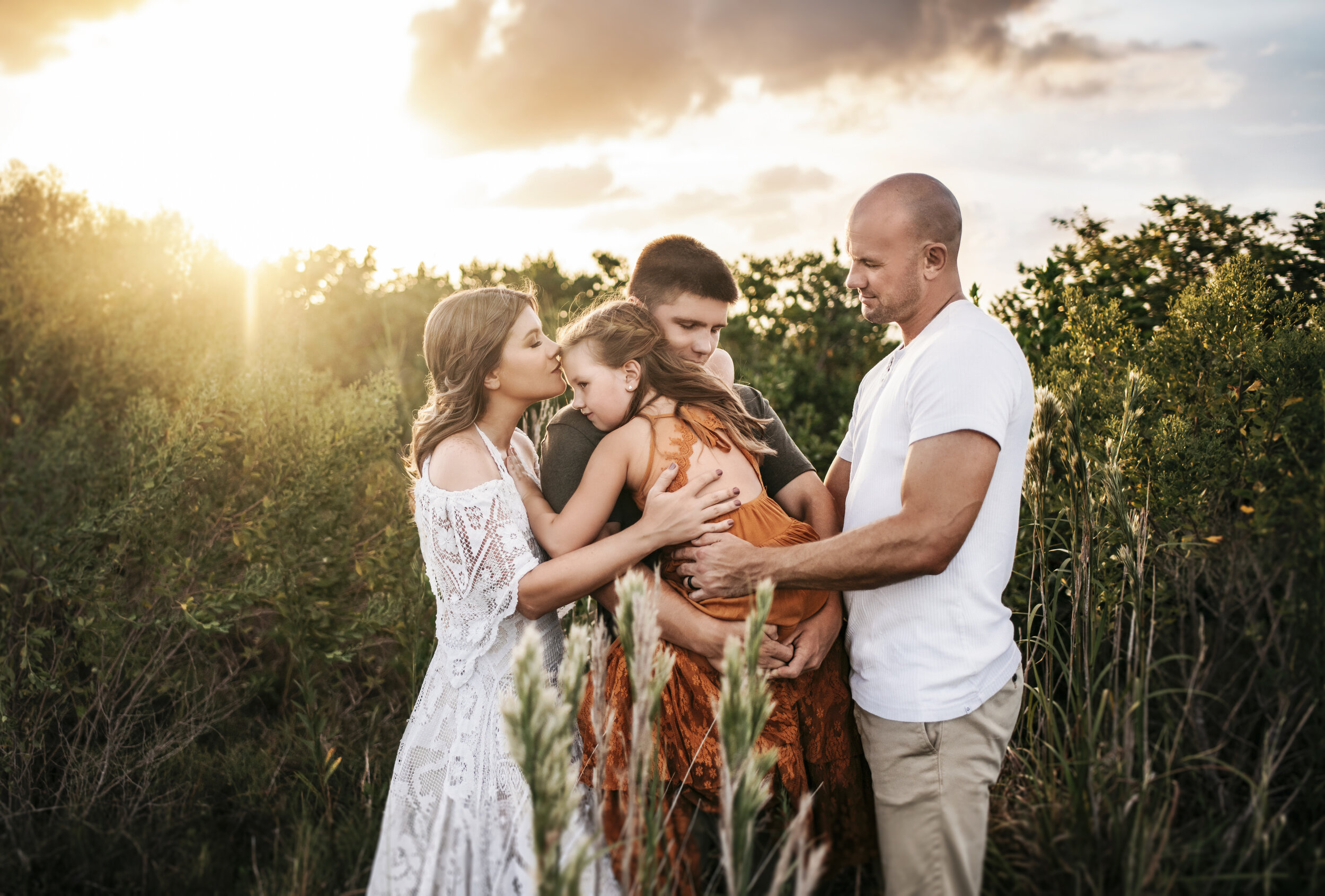 This family was a dream to work with! Mom’s stunning dress is from Reclamation (which offers dress rentals for photo sessions). The golden dress is from Joyfolie, which is one of my absolute favorite shops to find dresses for girls and women. I love their outfit coordination. It’s the perfect example of colors that photograph well and compliment each other. Goldenrod, Army green, khaki/tan, and white. Simple, yet perfect. Especially when combined with that golden sunset! - swoons -