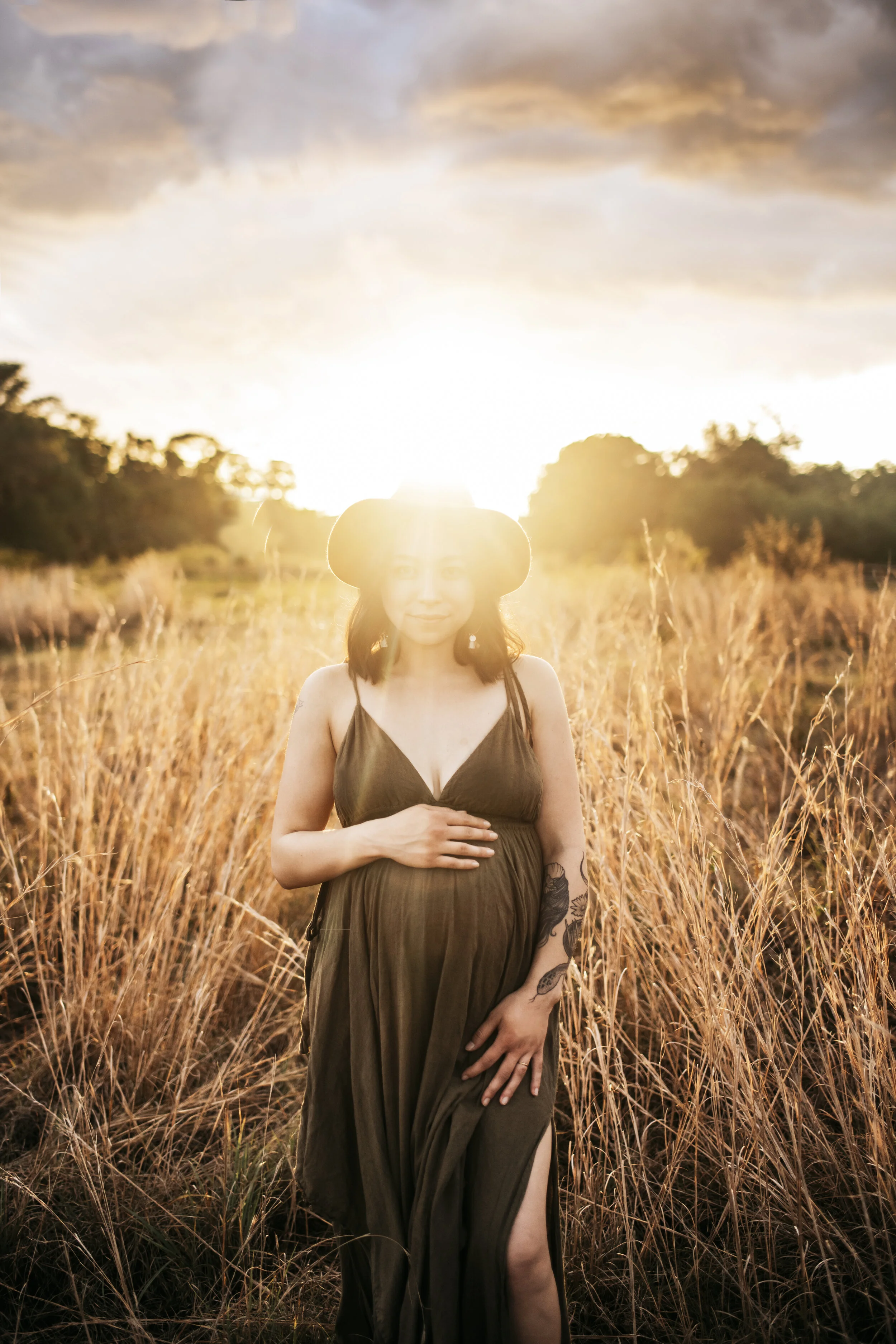 I think this has to be one of my favorite sessions from this location. When the sun sets so golden through the trees in the fern trail, it makes magic! Then just add these adorable clients to the mix, and it’s my new fav. The rust velvet Reclamation dress is part of my client-closet and can be used for both maternity and non-maternity. I know rust and burnt orange is so 2019, but I’ll never get sick of it. It’s one of the prettiest colors to photograph, and adds warmth to the images. The olive green halter dress (from Free People) is also part of my client closet. I highly recommend Free People to my clients who are looking for maternity dresses, because many of their selections have a stretchy mid-section and are super flowy. This location is in North Fort Myers and can be used year-round, but I’d definitely consider it seasonal because the foliage looks different all throughout the year.